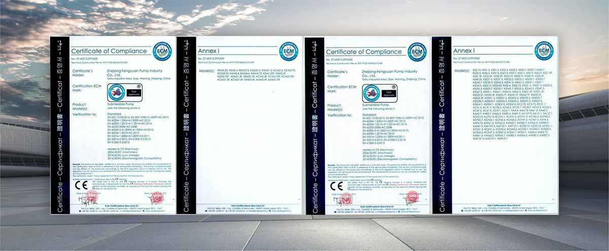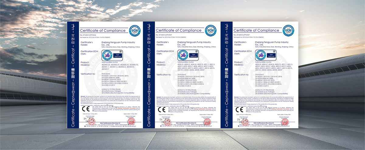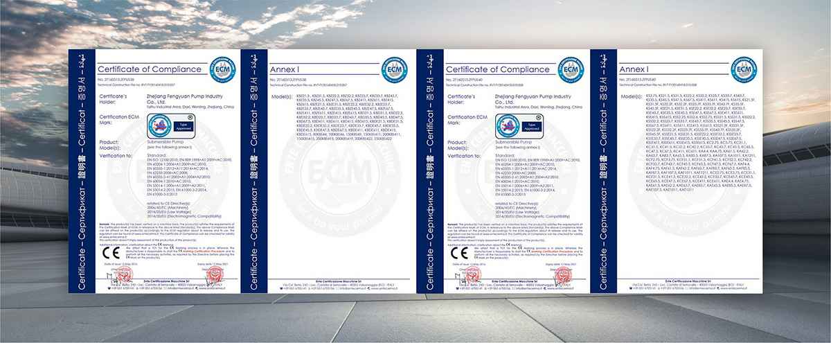 公司是全国农机标委会排灌设备和系统分会委员、是《小型潜水电泵》、《污水污物潜水电泵能效限定值及能效等级》、《井用潜水电泵能效限定值及能效等级》等多项国家标准,以及《大中型潜水电泵》、《水泵综合性能试验台校准规范》等行业标准的主要起草单位之一;公司通过IS09001:2015质量管理体系认证,多个系列产品取得CE、SASO等证书。